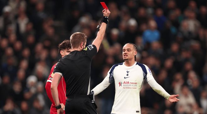 安菲尔德那晚的风有点冷,但场上的火药味不低。萨拉赫不在,利物浦的进攻少了点锐气,开场那阵子来回倒脚,看得人直打哈欠。热刺也不是状态多好,两边你来我往,传球失误一个接一个,跟约好了似的。前30分钟基本就是中场拉锯战,谁都没能真正撕开对方防线。这种节奏下,唯一的变数,往往就来自一次鲁莽——哈维西蒙斯对范戴克的那个飞铲,真够狠的,VAR一调,主裁二话不说掏出红牌。那一刻,热刺的战术板直接乱了。